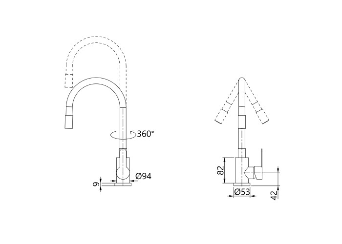 Змішувач для кухні Brinex Pure 015F3 із гнучким виливом Graphite/Grey – поєднання стилю та зручності. Гнучкий вилив у графітовому кольорі із сірими акцентами додає елегантності вашому інтер'єру. Корпус із нержавіючої сталі з керамічним картриджем гарантує довговічність. У комплекті: змішувач, кріплення.