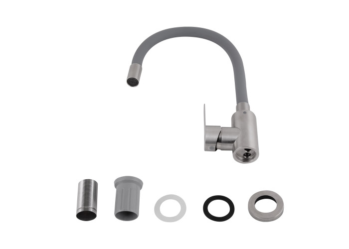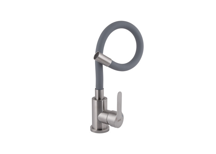 Змішувач для кухні Brinex Pure 015F3 із гнучким виливом Nickel/Grey – стильний та практичний вибір. Гнучкий сірий вилив гармонійно поєднується з нікелевим корпусом. Легкість регулювання напору води та висока зносостійкість завдяки керамічному картриджу. Комплектація: змішувач, кріплення.