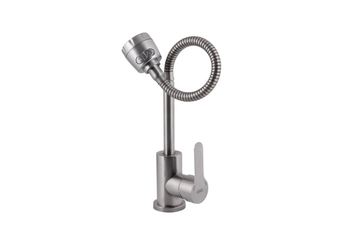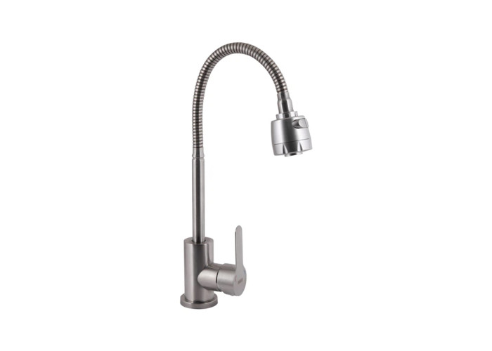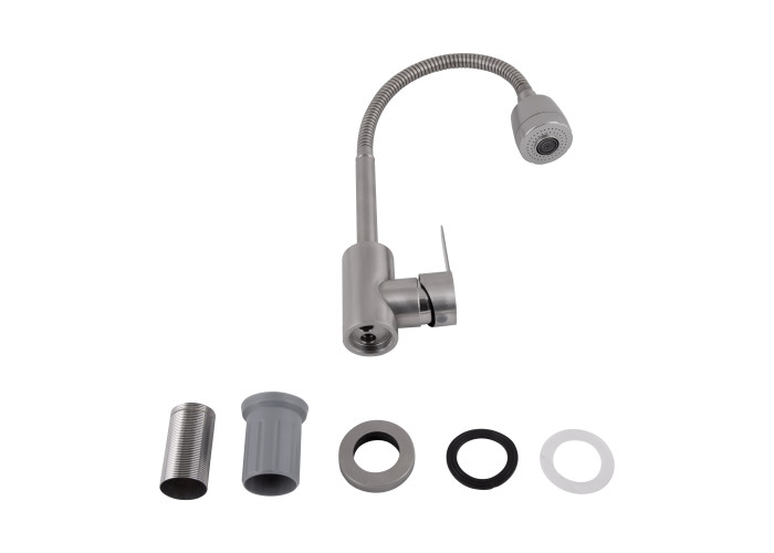 Змішувач для кухні Brinex Pure 015F41 із гнучким виливом Nickel – універсальне рішення для кухні. Гнучкий вилив дозволяє легко направити потік води в потрібне місце. Нікельове покриття стійке до пошкоджень та корозії. Надійний керамічний картридж забезпечує плавну роботу.