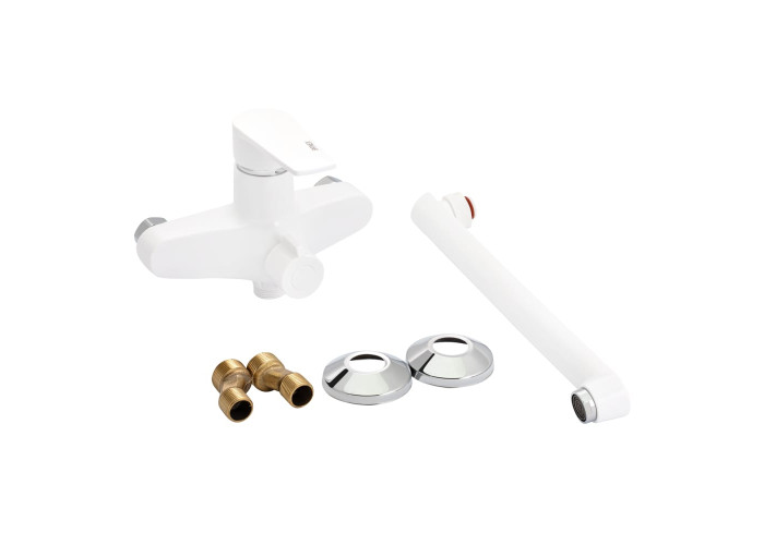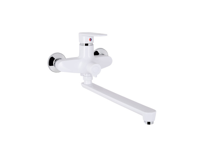 Змішувач для ванни Brinex 35W 005 з довгим поворотним виливом виготовлений з термопластичного пластику з рівномірним білим покриттям. Управління потоком здійснюється зручним важелем з маркуванням холодної і гарячої води, а перемикання на душовою режим - поворотним дивертором. Декоративні розетки допоможуть приховати вади монтажу.