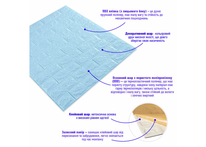 3D панель самоклеюча 700х770х7мм цегла Блакитна (005-7) SW-00000658