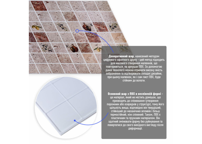 Розмір ПВХ панелі – 960ммх480мм. Товщина – 4 мм.