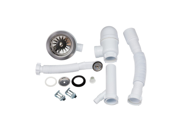 Мийка, сифон, злив/перелив, корзинчастий вентиль, кріплення.