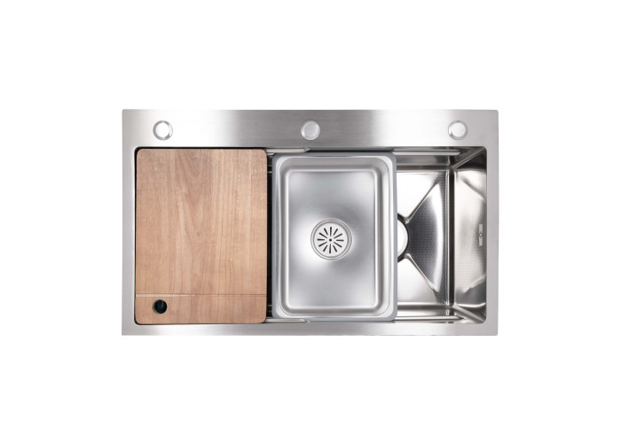 Комплектація Мийка, сифон, злив/перелив, корзинчастий вентиль, кошик, кухонна дошка, дозатор, кріплення.