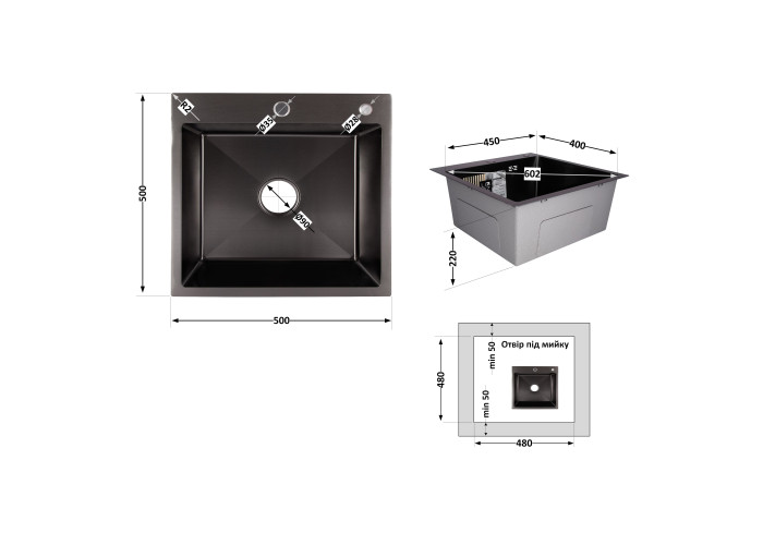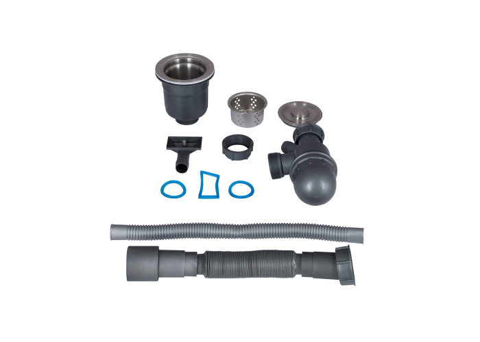 Мийка, сифон, злив/перелив, корзинчастий вентиль, дозатор, кріплення.