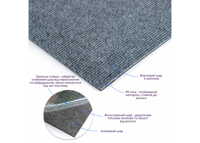 Самоклеюча плитка під ковролін сіра 600х600х4,5мм SW-00001418