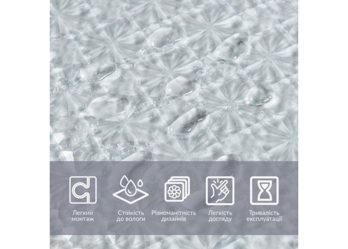 Фактура: призматична (переломлює світло, утворюючи красиві відблиски та візерунки, що нагадують грані призм або скла).