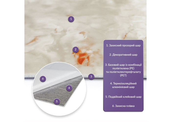 - 3. Ізоляція: плитка має звукову та теплоізоляцію завдяки наявності повітряних прошарків та додатковому алюмінієвому шару;