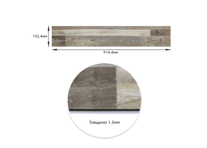 Площа покриття: 152 х 914 мм – 0,138 м², кількість на 1 м² – 8 одиниць