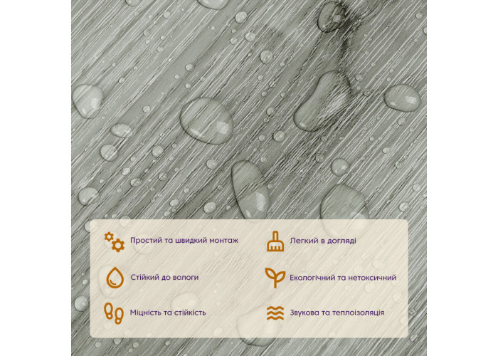• Стійкість до вологи: вінілова плитка під ламінат стійка до вологи, що робить її відмінним вибором для кухні та інших приміщень з підвищеною вологістю, матеріал стійкий також до впливу пари та до появи плісняви.