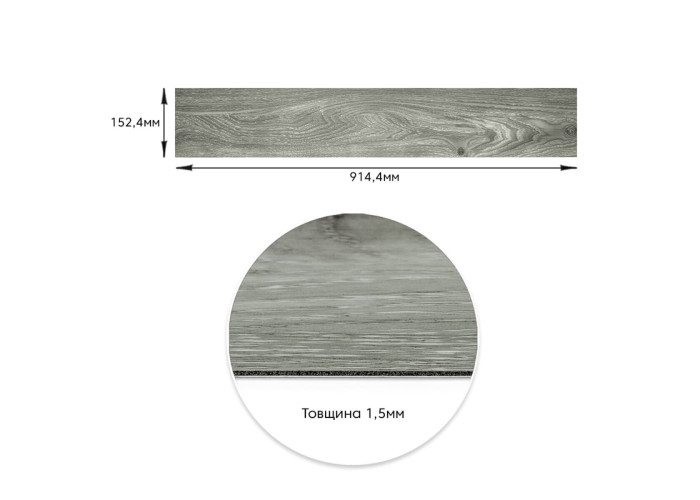 Самоклеюча вінілова плитка 152.4х914.4х1.5мм Сіре дерево, ціна за 1 шт. (СВП-001) Матова SW-00000283