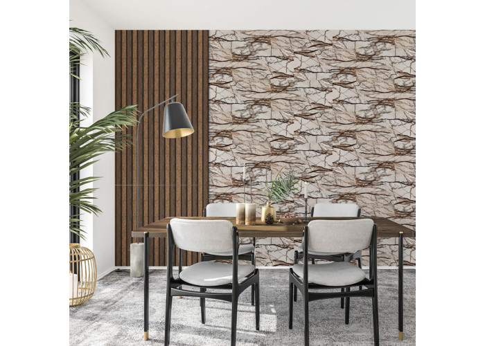 1. Легка установка: самоклеючий шар робить процес укладання швидким і простим, не вимагаючи додаткового клею, додаткових матеріалів чи спеціалістів. Матеріал укладається стик в стик, його можна різати ножицями чи монтажним ножем, між смугами не розходиться, не набухає і не деформується. Відсоток обрізу становить 1%, що є найкращим показником для настінних покриттів;