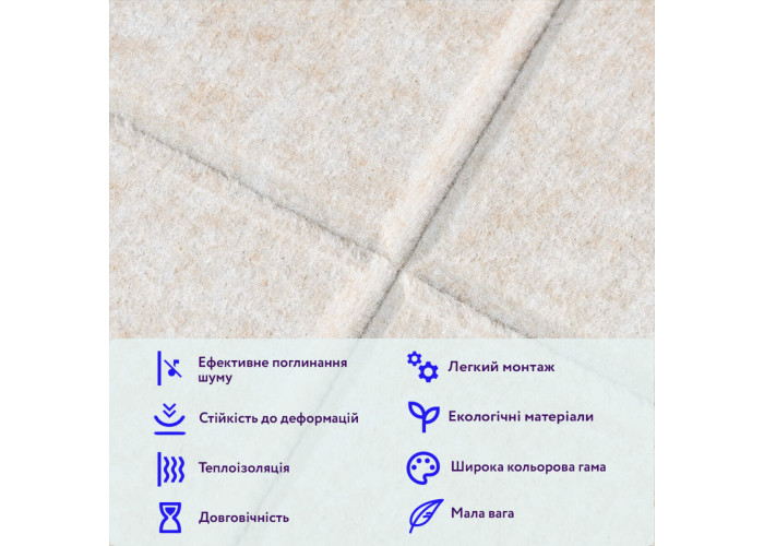 Стійкість до деформацій: щільна конструкція зберігає форму навіть при тривалій експлуатації, не провисає та не осідає, забезпечуючи довготривалі акустичні та декоративні властивості.