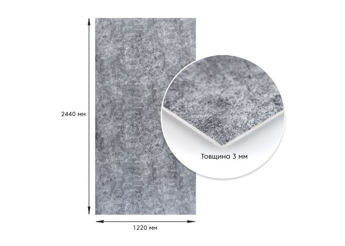 Розмір ПВХ плити - 2440ммх1220мм. Товщина - 3 мм. Вага листа - 19кг