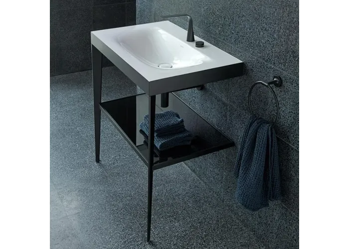 Рама c-bonded міцно склеюється з керамікою і поставляється разом зі скляними вкладками і деталями металевої консолі в одній упаковці. Меблеві умивальники не поставляються з WonderGliss. Кераміка кріпиться до стіни за допомогою двох монтажних рейок і шпильок з різьбленням. Рекомендується декоративний сифон # 005036