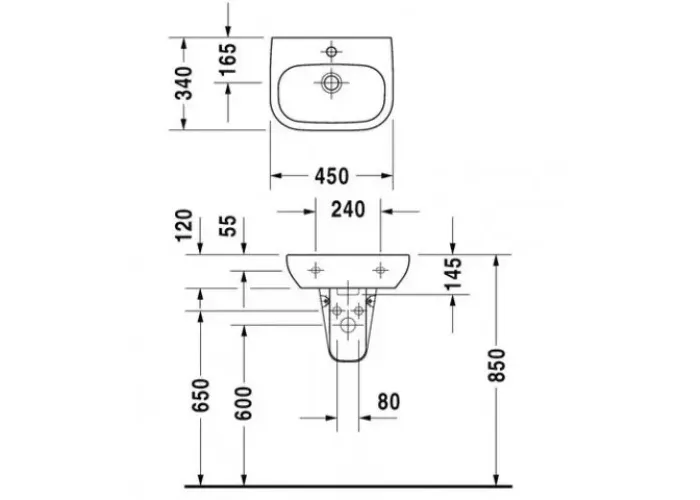 Особливості умивальника підвісного Duravit D-Code 450x340 мм (07054500002);