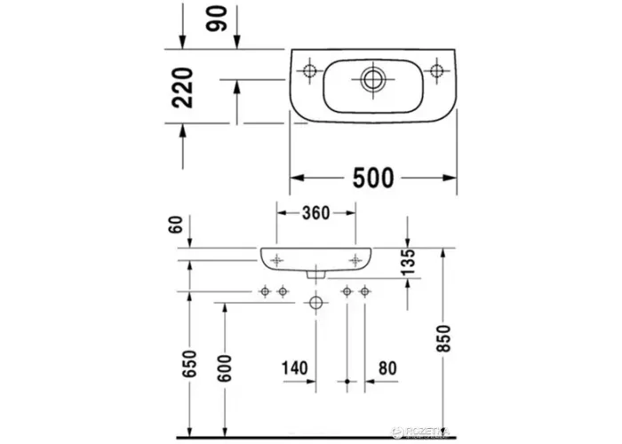 ОСОБЛИВОСТІ умивальник Duravit D-Code 50х22 (07065000092);