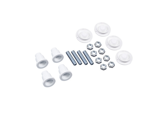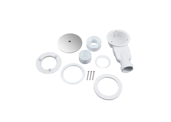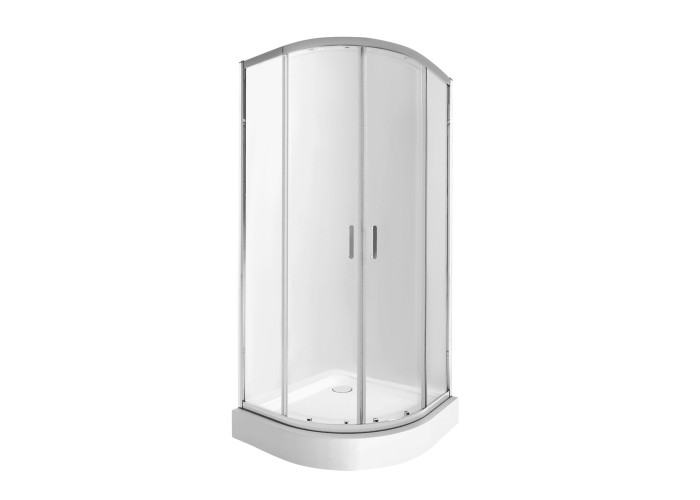 Піддон, подвійні ролики, ручки, верхній профіль, нижній профіль, бічні профілі, набір ущільнювачів, розширювальні профілі, 2 скляні двері, 2 глухі скла, комплект кріплень, заглушки, елементи, що з'єднують, фіксатори, ніжки, сифон з гідрозатвором.