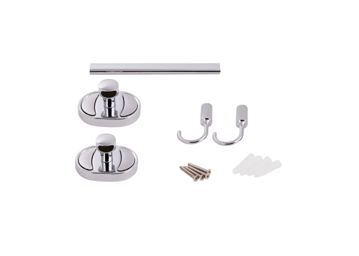 Гачки - 2 шт., з'єднувальна планка, тримачі планки - 2 шт., кріпильні деталі ( дюбель-цвях - 4 шт.).