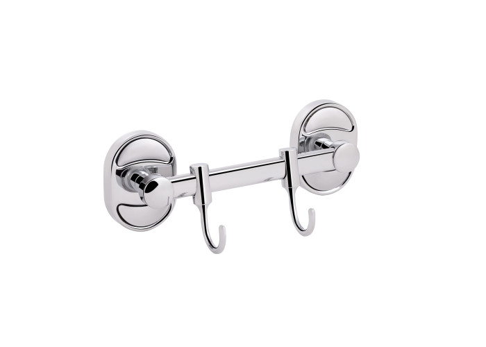 Тримач для рушників і халатів Lidz (CRM) 114.08.02 виконаний у вигляді планки з двома пересувними гачками на ньому. Він кріпиться на стіні на зручній висоті за допомогою кріплення, яке входить до комплекту. Прихований монтаж дозволяє зберегти обробку ванної кімнати. Поверхня хромована, тому менш схильна до корозії і бруду. Під час прибирання досить протерти за допомогою мильного розчину та м'якої серветки.