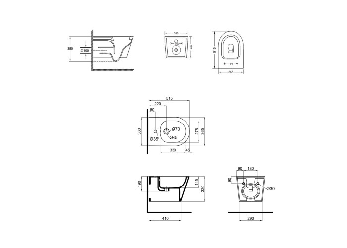Матеріал Кераміка – унітаз, біде; дюропласт - сидіння