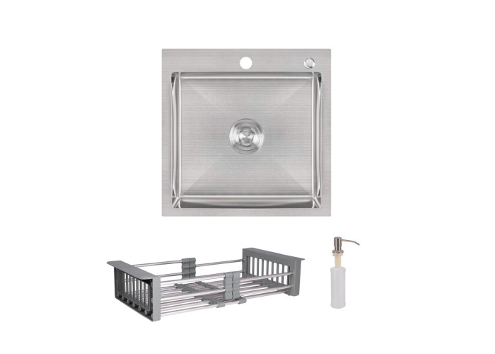 Комплект Lidz Handmade H5050 (Brushed) пропонує квадратну мийку з інтегрованим монтажем і витонченим фінішем Brushed. Дозатор для мийного засобу та кошик Lidz K01G додають практичності, перетворюючи рутинні завдання на кухні на задоволення.