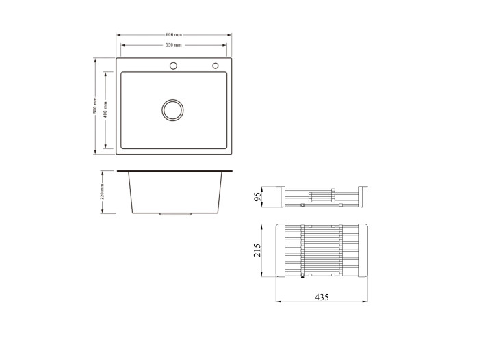 Нержавіюча сталь – мийка; нержавіюча сталь/пластик - кошик