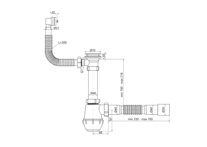 Сифон випуск, перелив, гофрована труба, перехідна труба.