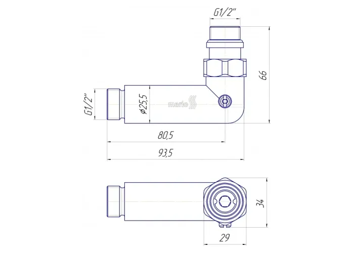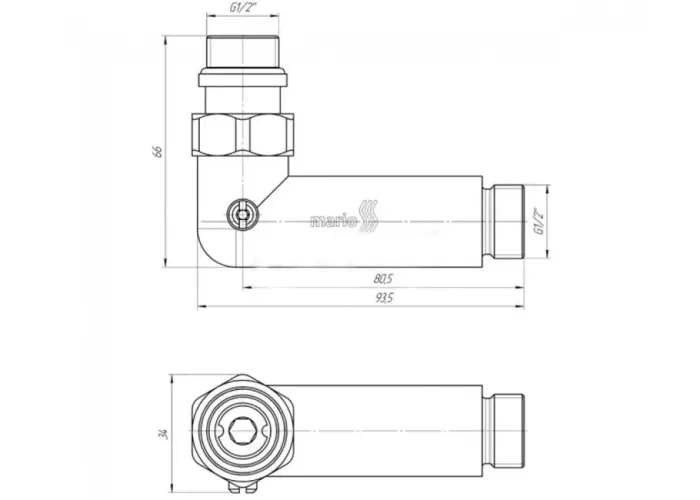 Кран кутовий запірний служить для підключення рушникосушарки, сервістного обслуговування і регулювання протоку рідини.