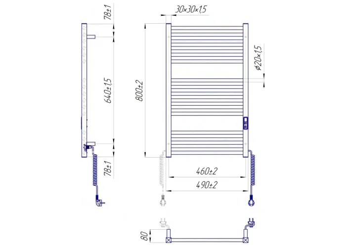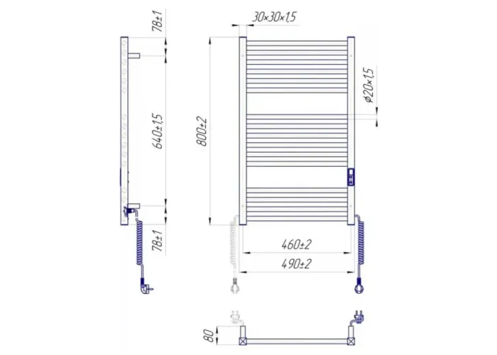 Електросушарка для рушників побутова Гера-I 800х500/80 TR К.;