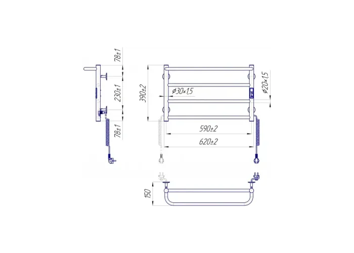 Електросушарка для рушників побутова Люкс Сіті-І 400х630/150 TR К.;