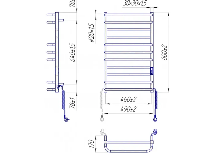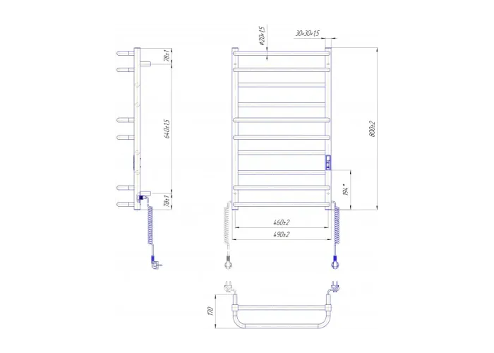 Електросушарка для рушників побутова Преміум Люкс-I 800х500/170 TR К.;