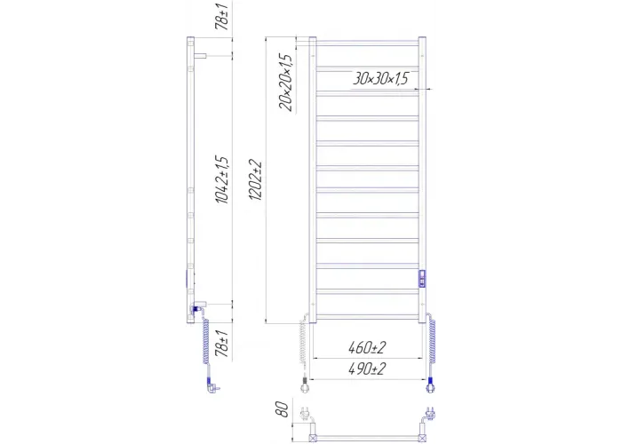 Електросушарка для рушників побутова Токіо-I 1200х500/80 TR К.;