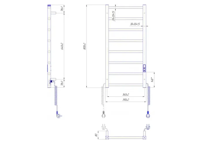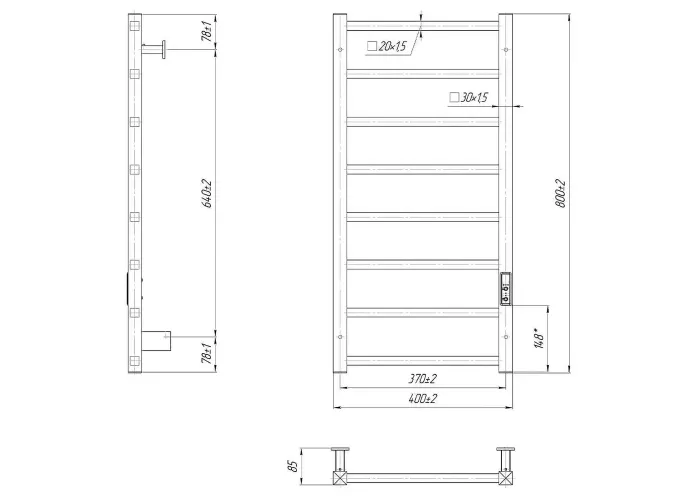Електросушарка для рушників побутова Токіо-I 800х400/80 TR К.;