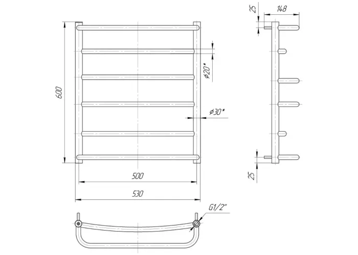 Рушникосушарка "Маріо" Люкс 600х530/500.;