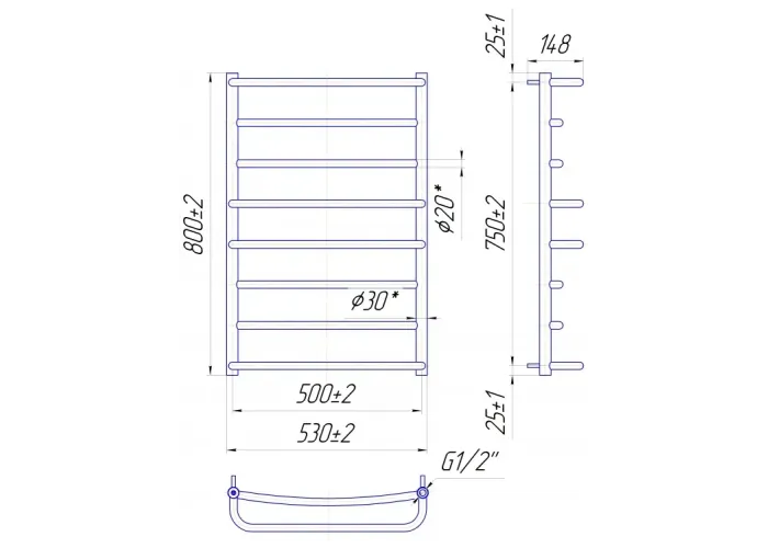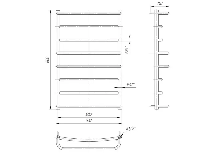 Рушникосушарка водяна MARIO Люкс 800х530/500 (1.1.0304.01.P)