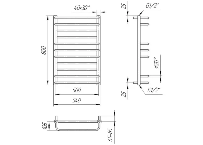 Рушникосушарка "Маріо" Преміум Люкс 800х540/500.;