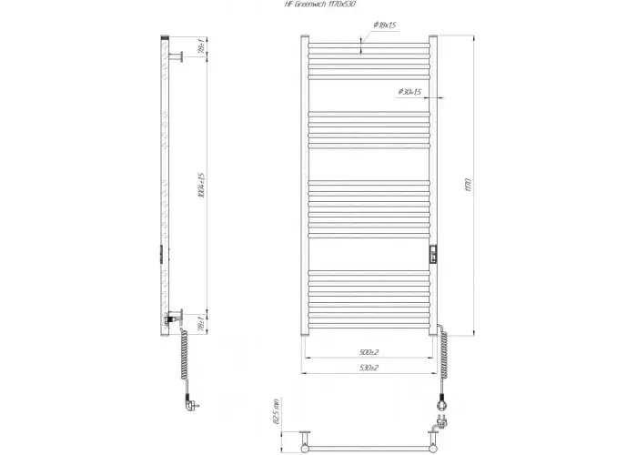 Електрична рушникосушарка HF Greenwich 1170х530.;