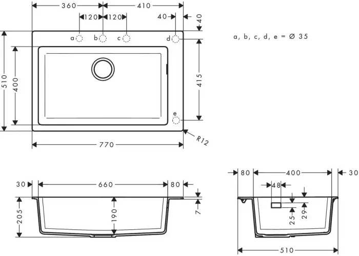 • глибина раковини: 190 мм;