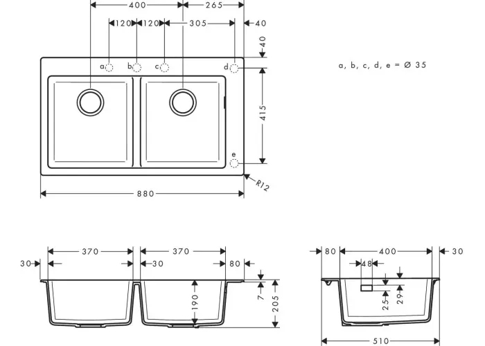 • глибина раковини: 190 мм;