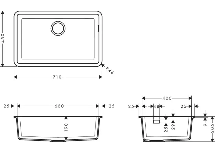 • глибина раковини: 190 мм;