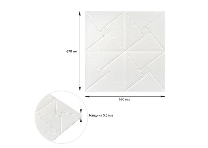 Самоклеюча декоративна настінно-стельова 3D панель орігамі 680х670х5.5мм (допустима похибка-3%)
