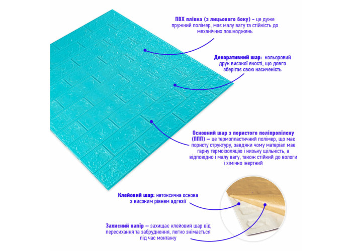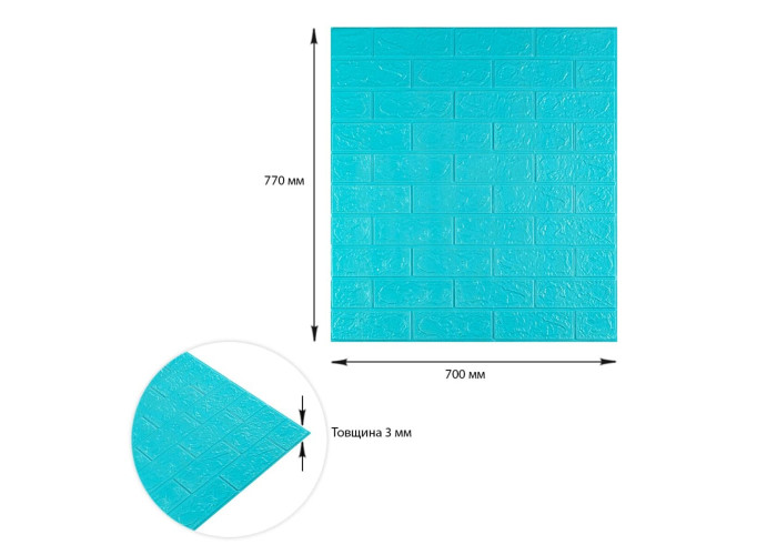 3D панель самоклеюча 700х770х3мм цегла Бірюза (002-3) SW-00000573