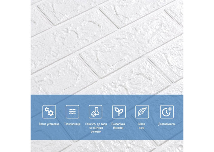 3D панелі самоклеючі – декоративне покриття для стін, виконане з легкого та міцного матеріалу – пористого поліпропілену (ППП). Основна особливість – рельєфний малюнок у вигляді цегли у широкому різноманітті кольорів та наявність клейового шару, що дозволяє встановити панелі без необхідності застосування додаткових матеріалів.