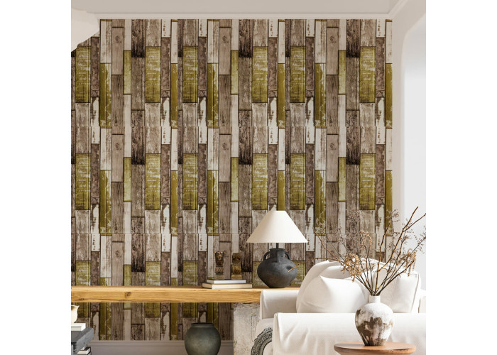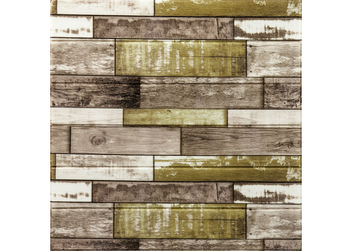 Самоклеюча декоративна 3D панель 700x700x4мм Зелено-коричневе дерево (378) SW-00000883