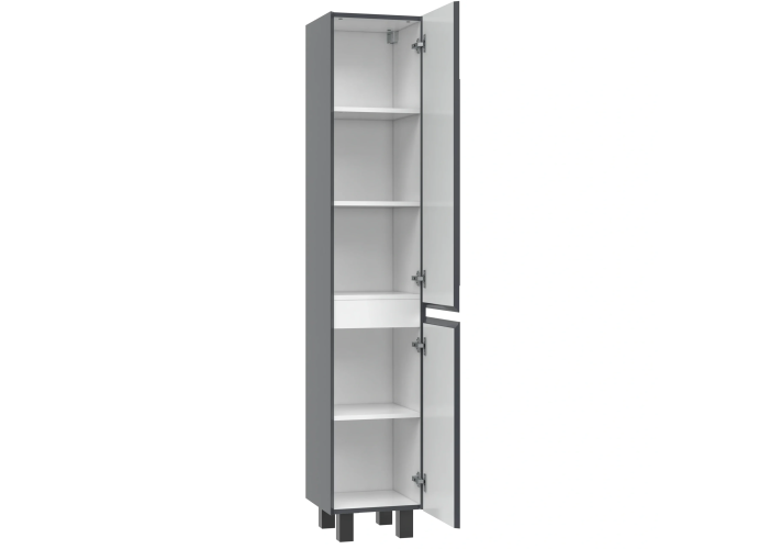 Цей високий пенал — раціональний вибір для максимального використання наявного простору, він втілює ідеальне поєднання великої місткості та витонченої, компактної форми. Його продумана до дрібниць внутрішня структура дозволяє ефективно організувати зберігання значної кількості предметів, від підлоги до самої стелі, зберігаючи при цьому візуальну цілісність та елегантність інтер'єру. Він виступає як потужний організаційний центр та водночас як стильний вертикальний акцент, що надає приміщенню завершеності, характеру та відчуття висоти.
