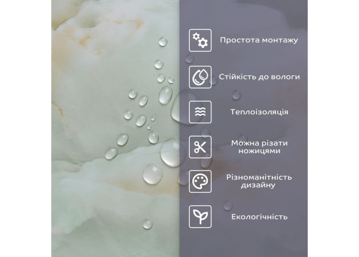 - 2. Стійкість до вологи: матеріал стійкий до впливу вологи та пари, а також до появи плісняви, що робить його придатним для використання у приміщеннях з високою вологістю, таких як ванни та кухні. Плитка підходить для створення фартуха кухні, можна клеїти біля плити на відстані не менше ніж 20-25 см;