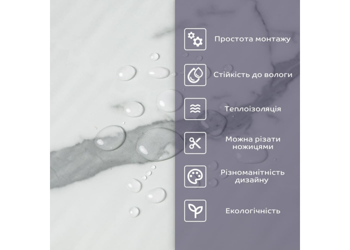 • 2. Стійкість до вологи: матеріал стійкий до впливу вологи та пари, а також до появи плісняви, що робить його придатним для використання у приміщеннях з високою вологістю, таких як ванни та кухні. Плитка підходить для створення фартуха кухні, можна клеїти біля плити на відстані не менше ніж 20-25 см;