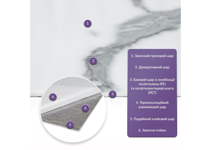 • Базовий шар з комбинації поліетилена (PE) і поліетилентерефталату (PET)