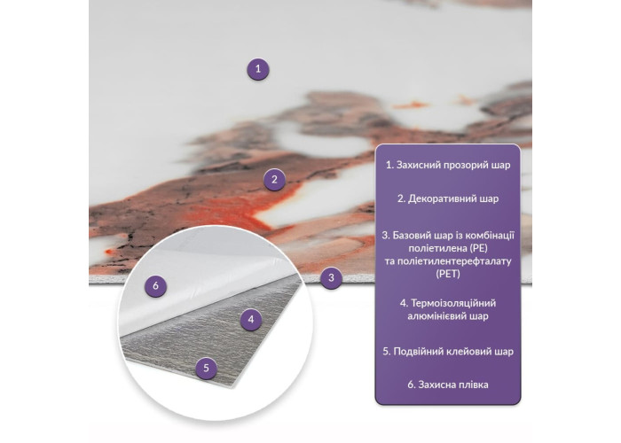- 3. Ізоляція: плитка має звукову та теплоізоляцію завдяки наявності повітряних прошарків та додатковому алюмінієвому шару;